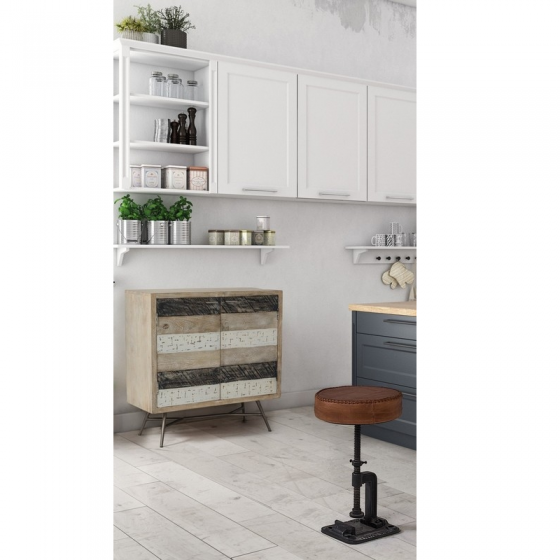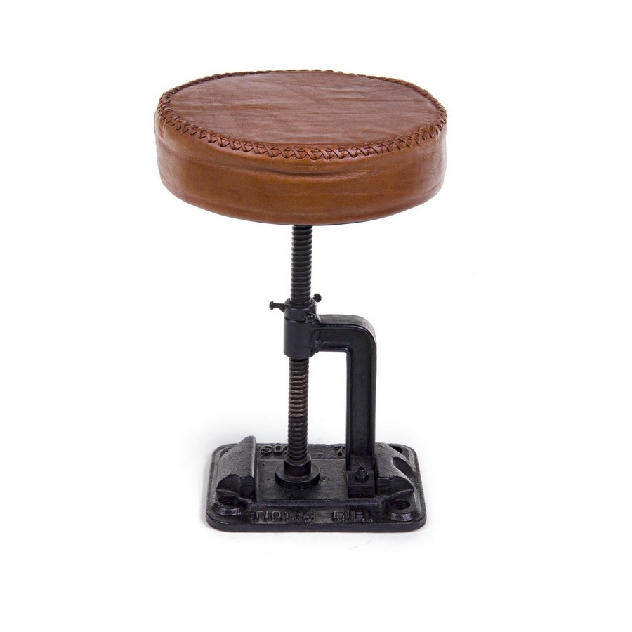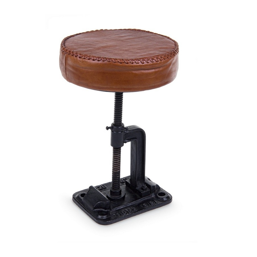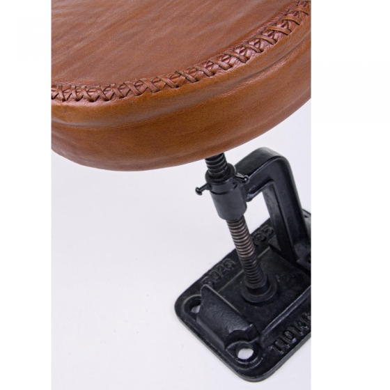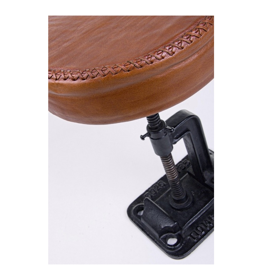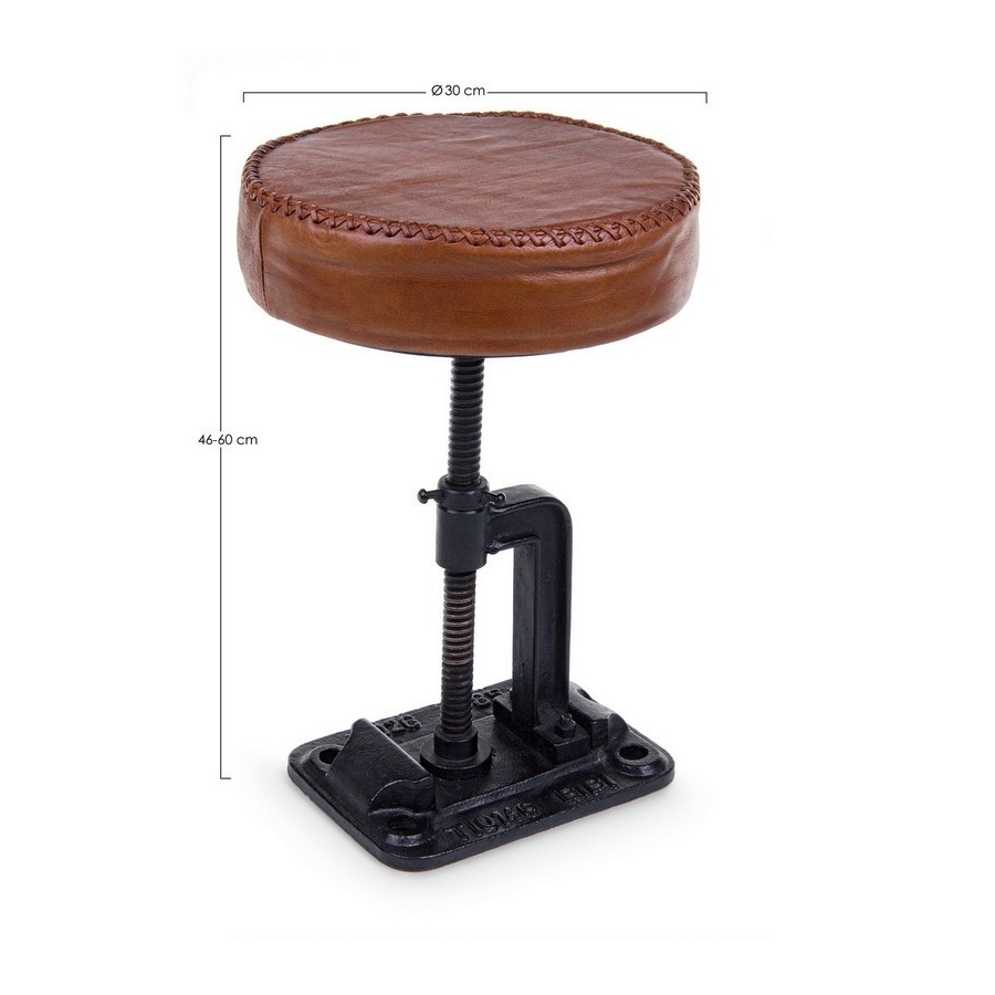 CADRE EN ACIER. SIÈGE PLEIN DE MOUSSE DE POLYURÉTHANE ET REVÊTU DE CUIR VÉRITABLE DE BUFFLE. HAUTEUR RÉGLABLE.
